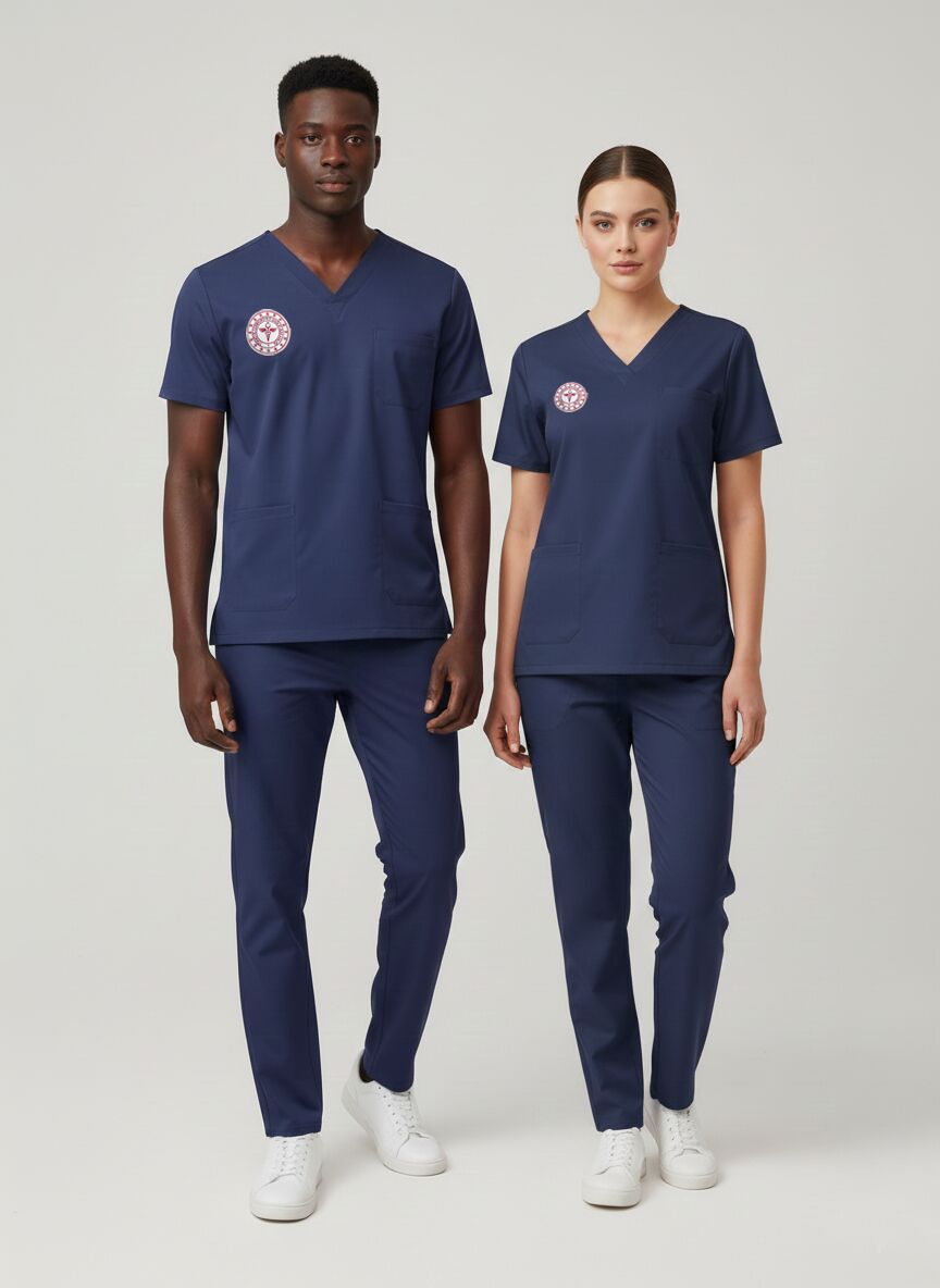 Hemşire Scrubs Likralı Takım Sağlık Bakanlığı Uyumlu-Patriot Blue