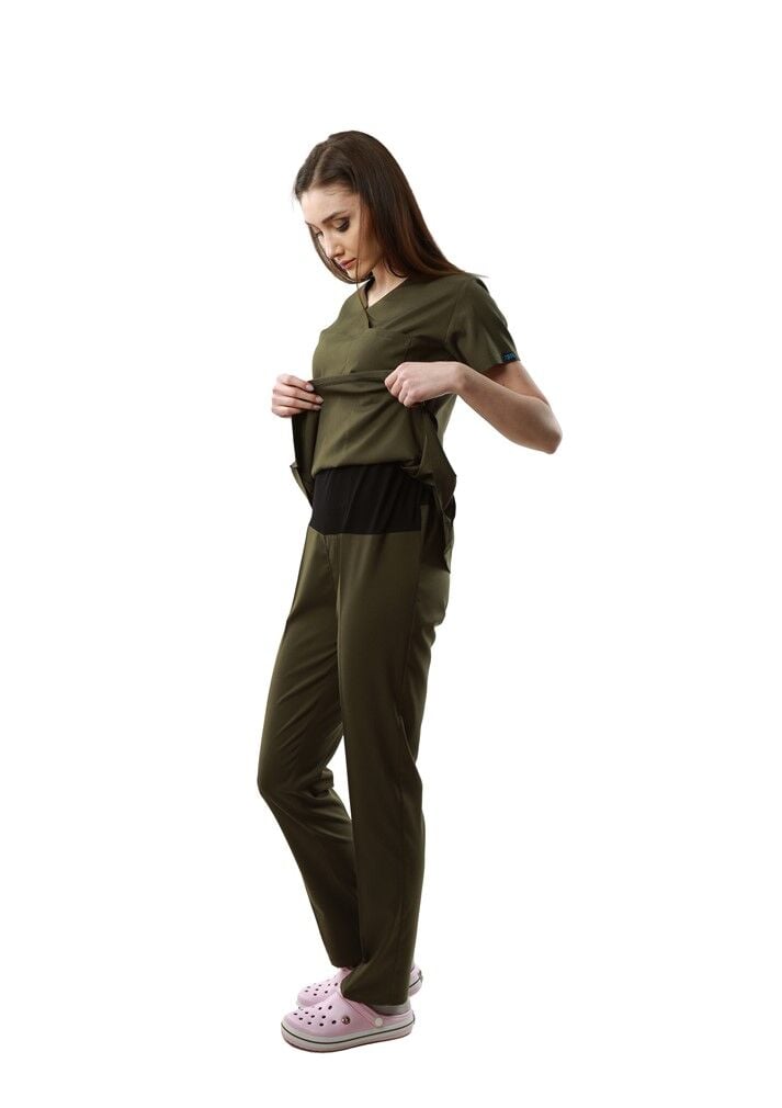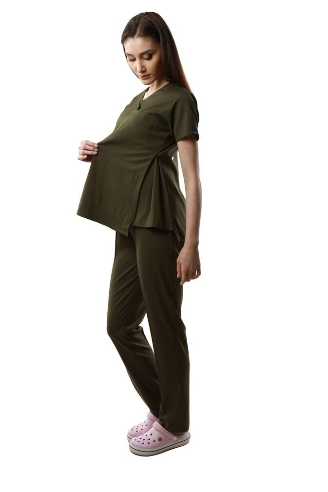 Likralı Kısa Kol Hamile Hemşire Doktor Forma Takımı