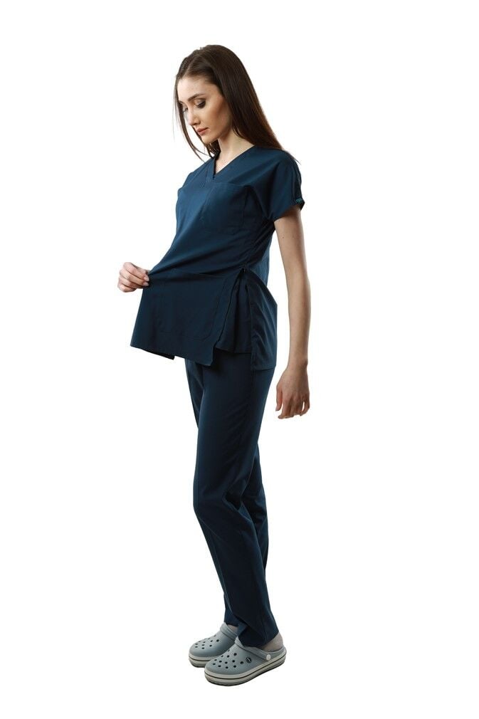 Likralı Kısa Kol Hamile Hemşire Doktor Forma Takımı