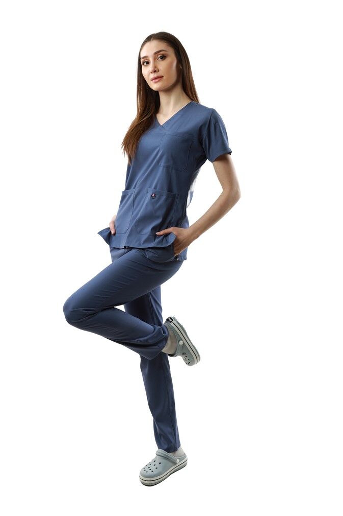 Likralı Normal Kol Hemşire Doktor Forma Takımı