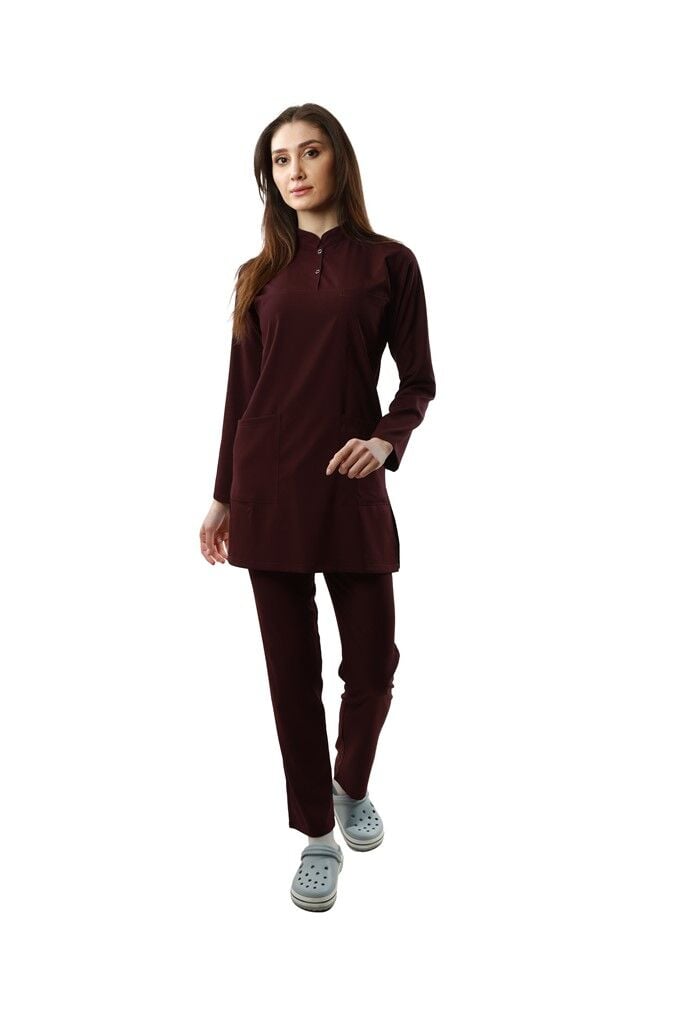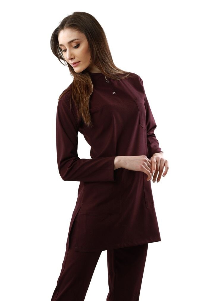 Mürdüm Rengi Likralı Bayan Tesettür Takımı