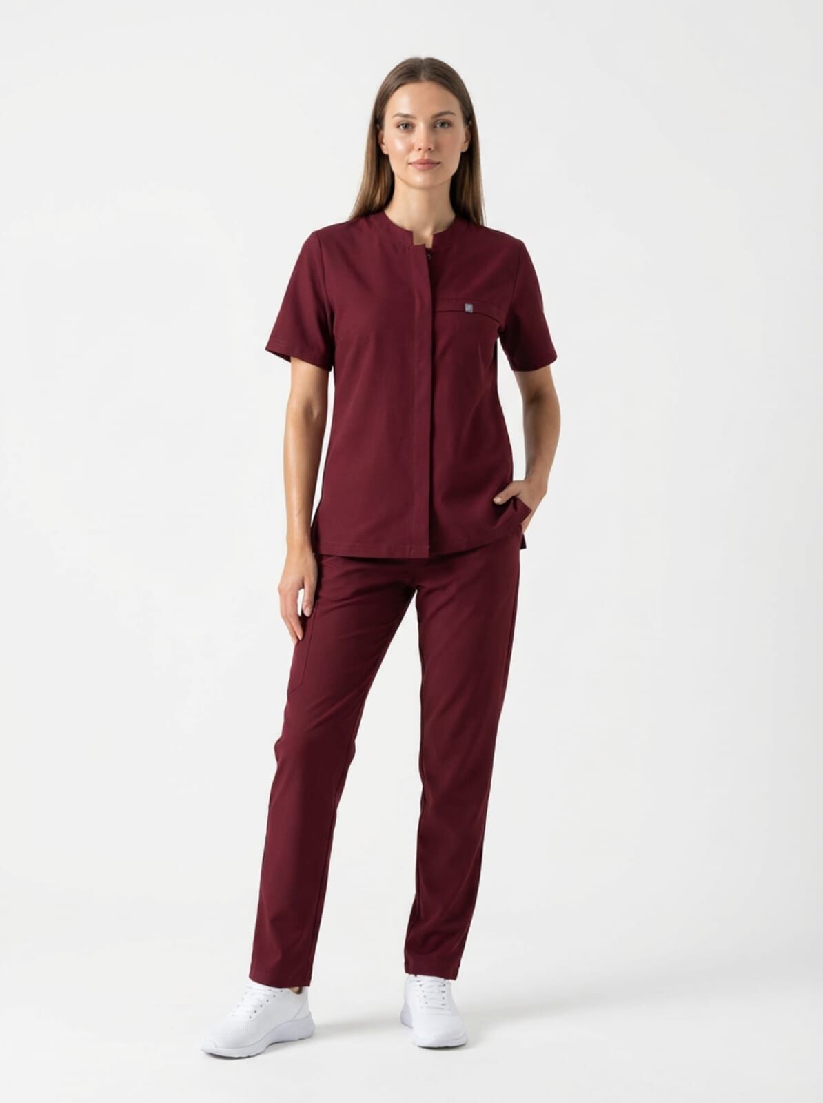MYRA-Bordo Likralı Tam Düğmeli Bayan Takımı