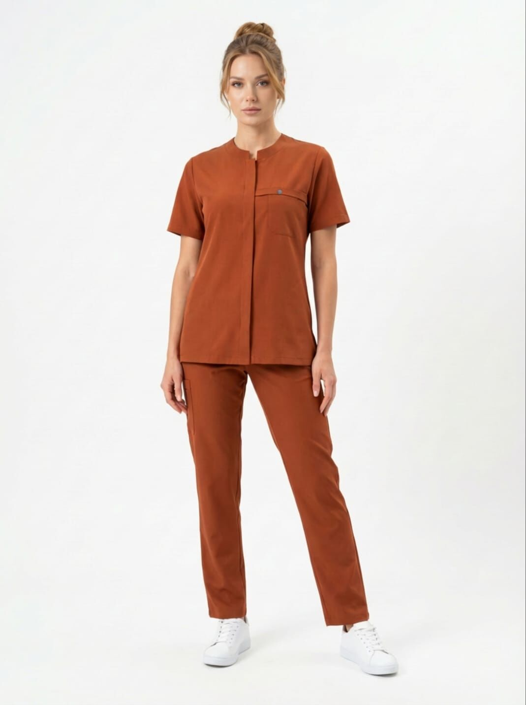MYRA-Tarçın Rengi Likralı Tam Düğmeli Bayan Takımı