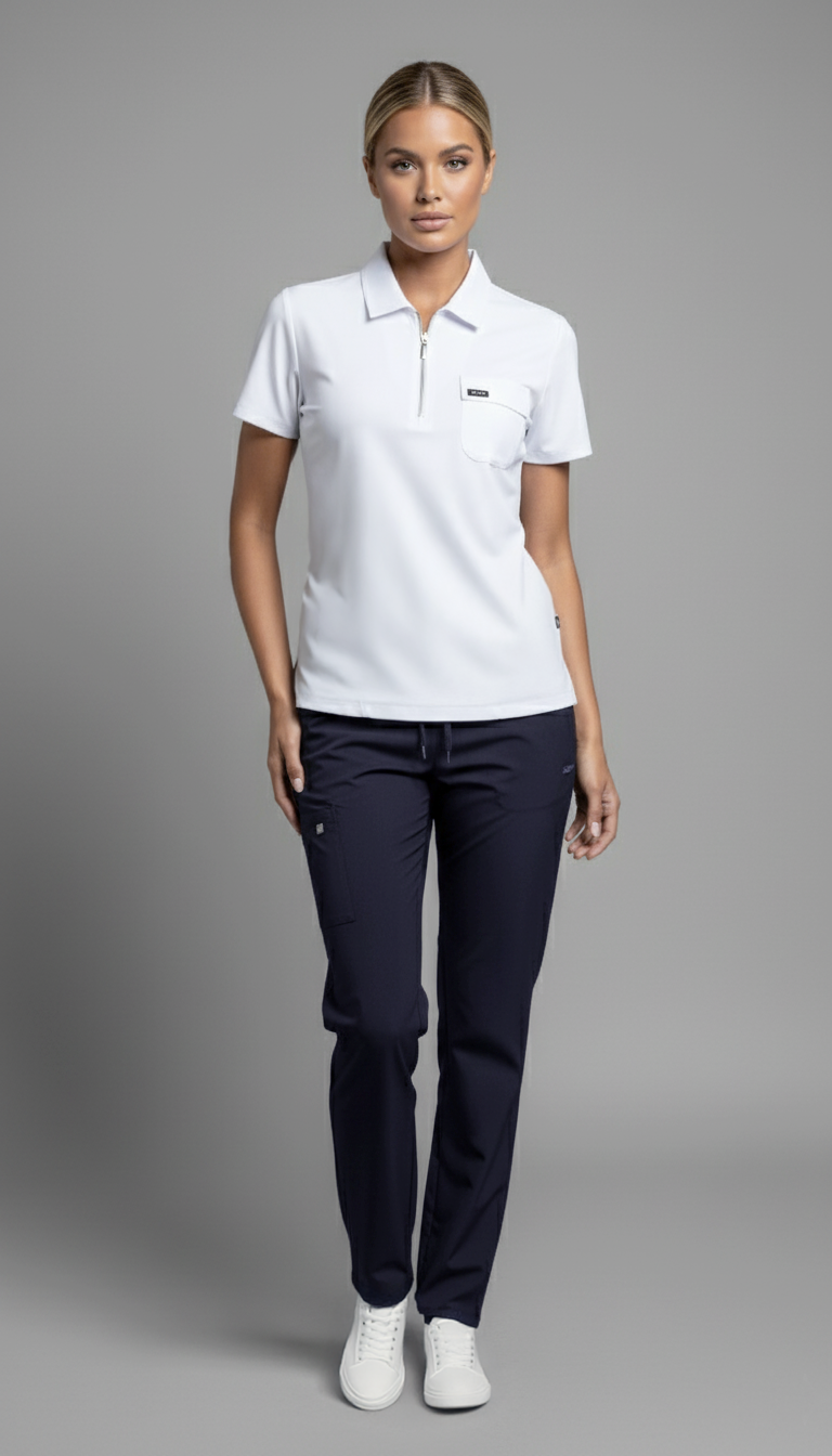 NERO- Lacivert-Beyaz Likralı Polo Yaka Bayan Takımı
