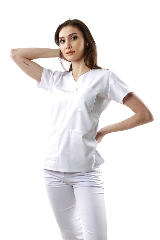 Likralı Normal Kol Hemşire Doktor Forma Takımı