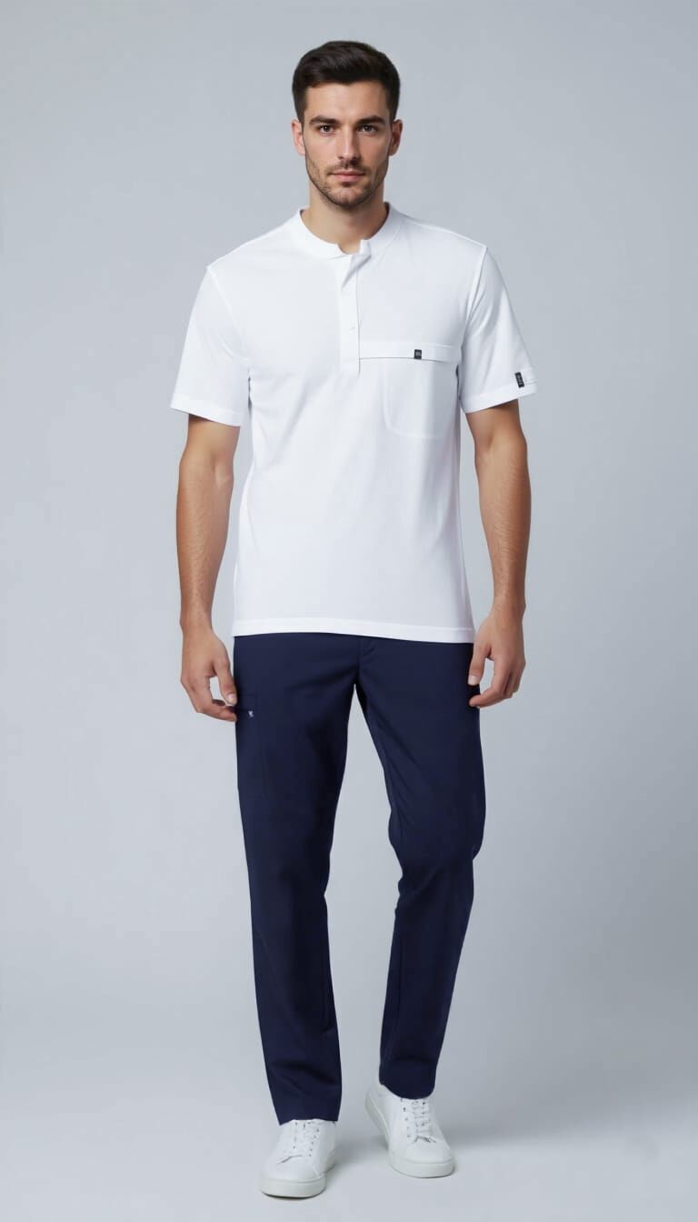 Nova-Lacivert-Beyaz Likralı Hakim Yaka Erkek Takımı