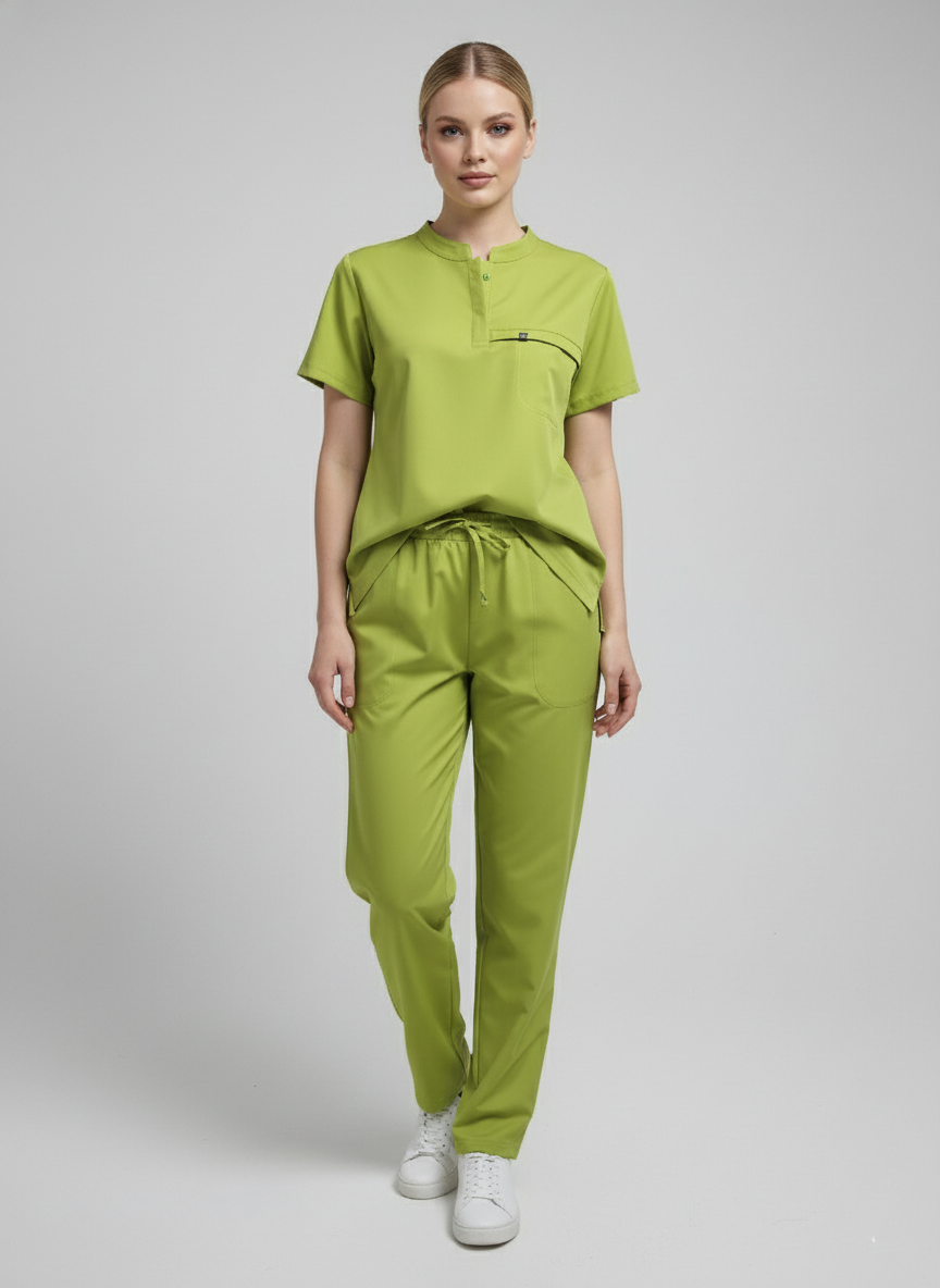 NOVA-Neon Yeşili Likralı Hakim Yaka Bayan Takımı