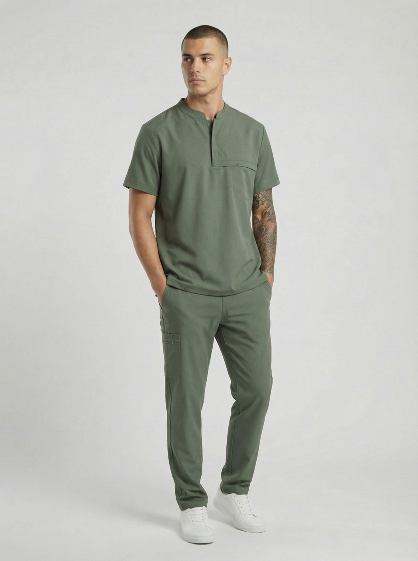 NOVA-Zeytin Yeşili Likralı Hakim Yaka Erkek Takımı
