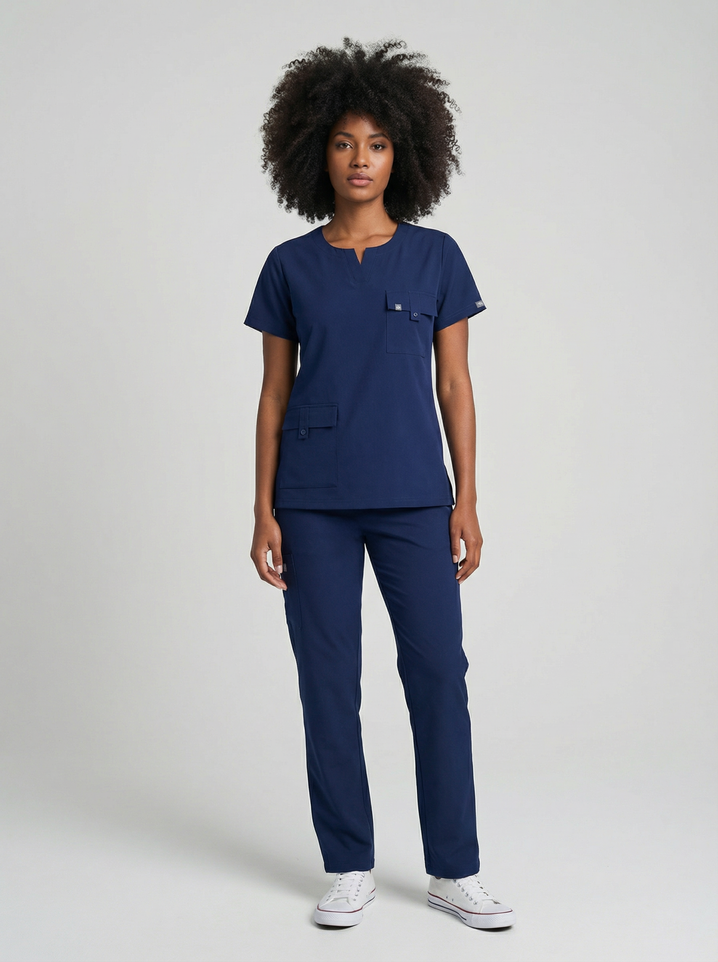 Asil mavi tonu, güçlü ve seçkin bir stil oluştururken; doktor, hemşire, diş hekimi, klinik personeli ve güzellik merkezi çalışanları için profesyonel bir alternatif sunar.