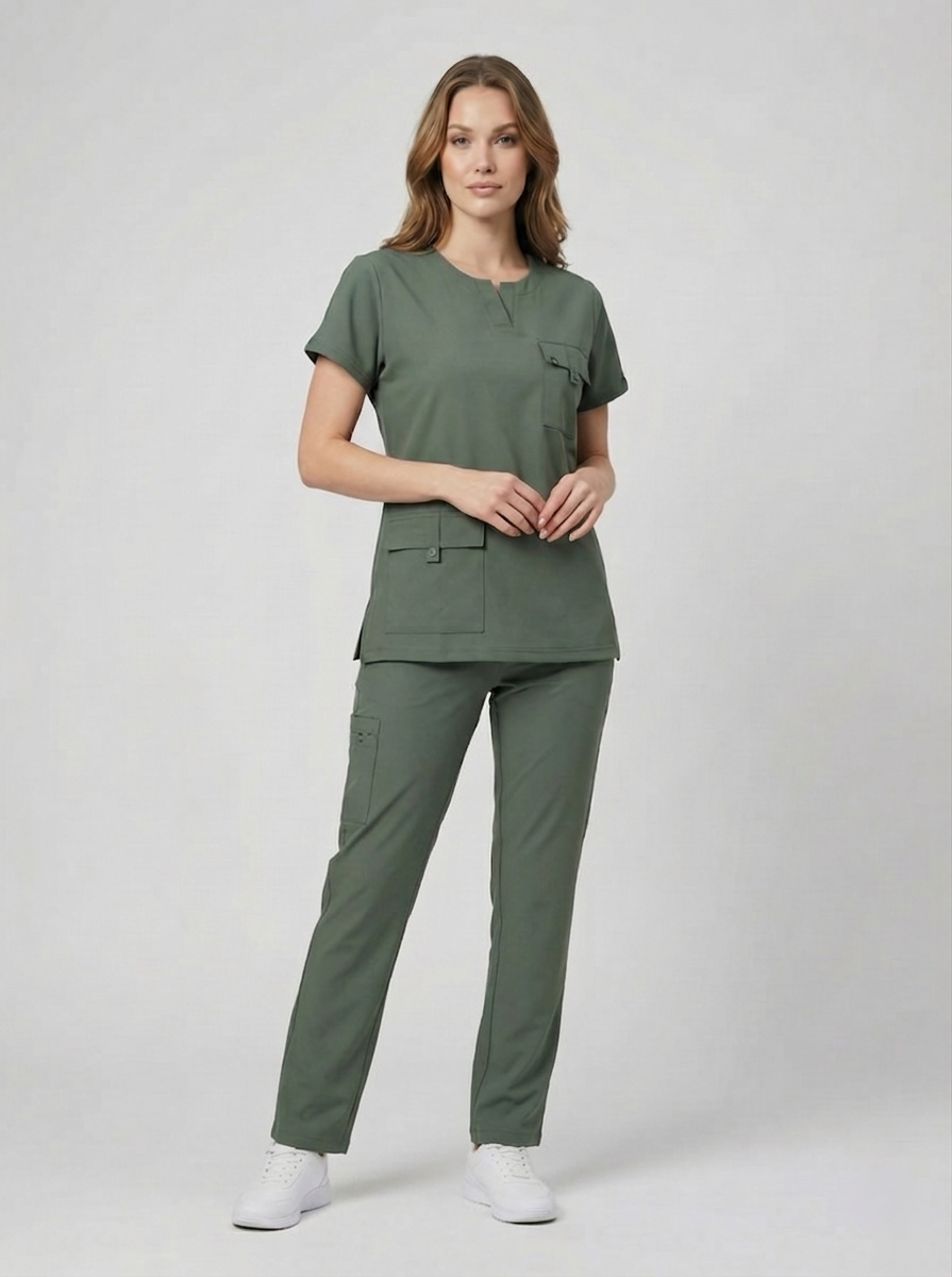Asil yeşil tonu, güçlü ve seçkin bir stil oluştururken; doktor, hemşire, diş hekimi, klinik personeli ve güzellik merkezi çalışanları için profesyonel bir alternatif sunar.