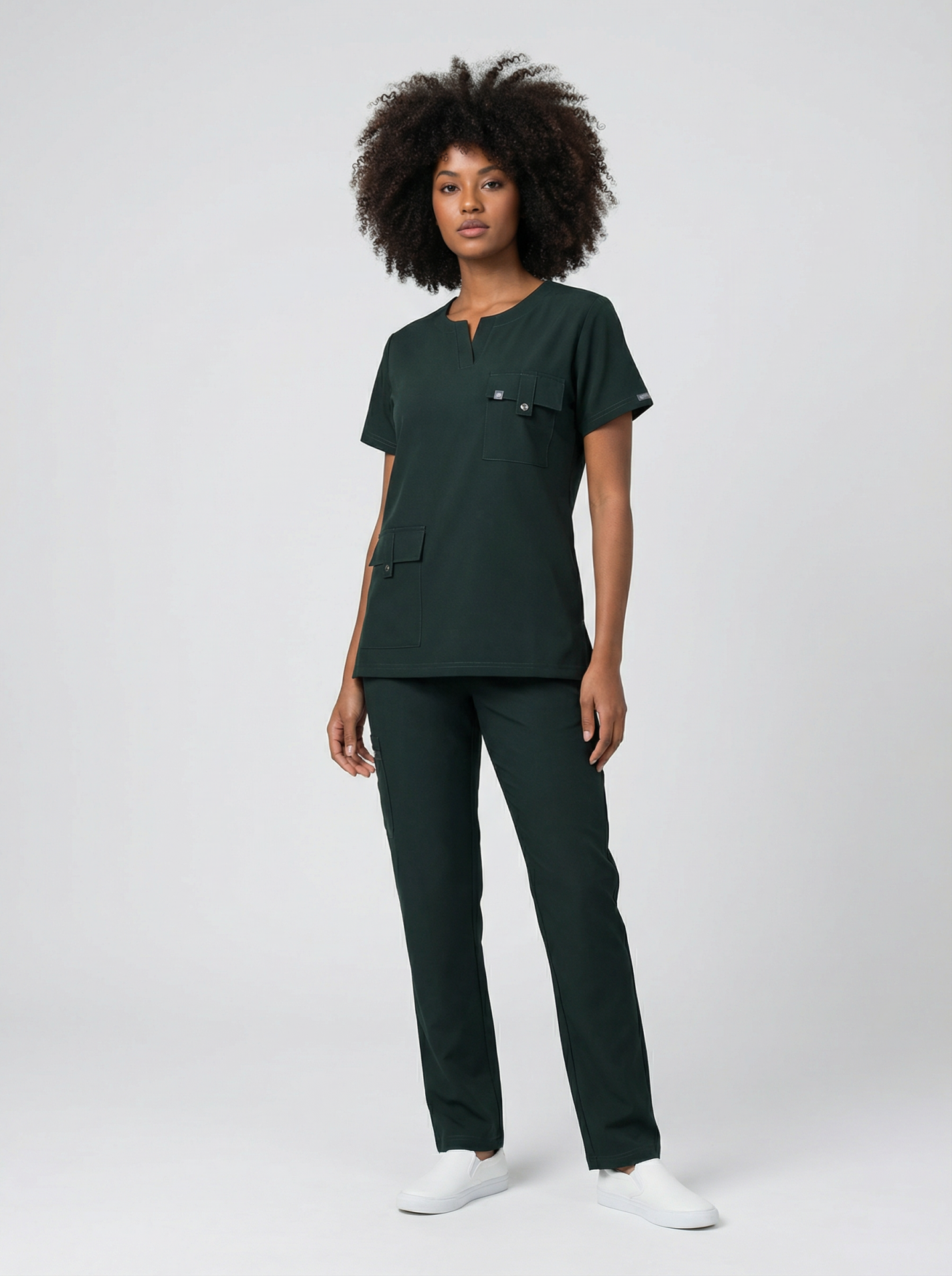 Asil yeşil tonu, güçlü ve seçkin bir stil oluştururken; doktor, hemşire, diş hekimi, klinik personeli ve güzellik merkezi çalışanları için profesyonel bir alternatif sunar.